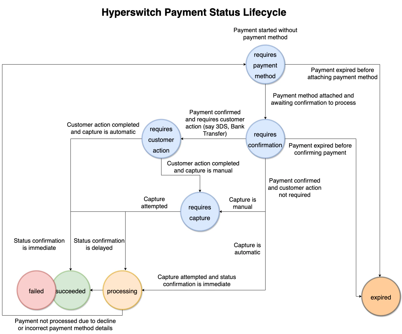 | succeeded | The payments object reaches success state post confirmation of successful processing from the payment processor. |